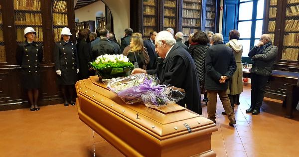NAPOLI. Si sono svolti nei locali della Società di Storia Patria al Maschio Angioino i funerali dello storico Giuseppe Galasso. In prima fila i figli Giulia, Francesco e Luigi accompagnati dai familiari e i rettori dell'Università Federico II, Gaetano Manfredi, e del Suor Orsola Benincasa, Lucio D'Alessandro. Presenti anche il sindaco di Napoli, Luigi de Magistris, e il governatore Vincenzo De Luca. «Le polemiche che qualcuno ha pensato di fare in queste ore sono solo nella testa e nel cuore di chi le ha fatte e sono state spazzate via da una giornata che ha visto tutti uniti. Con la famiglia non c'è mai stata alcuna polemica così come non c'e' stata assenza di partecipazione e di ricordo del Comune».