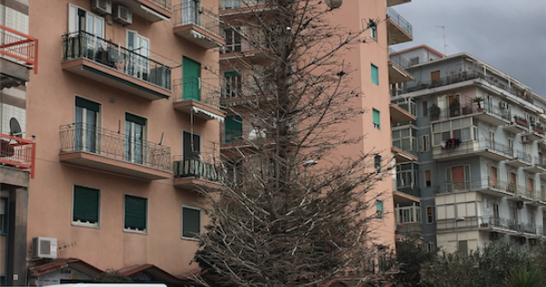 L'bete rinsecchito è a due passi dalla Villa Comunale. Ha persino tre palle di Natale ancora in cima