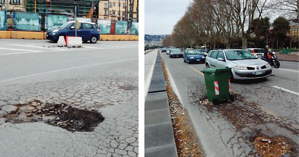 NAPOLI. Per le buche a Napoli è ormai è un tripudio del “fai da te”, meglio nota come “l’arte dell’arrangiarsi”, nella quale si cimentano cittadini avviliti che usano di tutto per evitare incidenti di auto o moto e cadute di ignari pedoni. L’ultima iniziativa, ma solo in ordine temporale, è stata l’uso del bidone dell’immondizia per la differenziata a mo’ di segnalazione. I condomìni mettono a disposizione i propri bidoncini della spaz-zatura per segnalare le buche più pericolose. È il caso di via Arcoleo e del Lungomare dove, da ieri mattina, sono apparsi questi contenitori dopo che un automobilista e un motociclista hanno rischiato di rimetterci l’osso del collo per colpa di due voragini. Nel caso specifico di via Arcoleo si tratta di una buca più volte segnalata, anche dal nostro giornale in un articolo di mercoledì scorso, dove si evidenziava proprio la pericolosità di questa “fossa” che si trova tra i vecchi binari del trame un chiusino, e dalla quale sono spuntati anche i vecchi sanpietrini poi coperti dal bitume di vecchi rattoppi. Sul Lungomare, analogo caso se non più pericoloso.