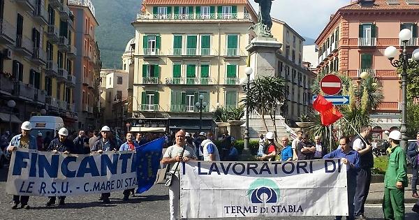 CASTELLAMMARE DI STABIA. Inferno in città per la crisi del lavoro. Operai della Fincantieri e delle Terme insieme bloccano il centro cittadino per le vertenze che vedono le tute blu impegnate sul fronte del contratto e i termali in difesa del futuro delle Terme di Stabia e delle loro famiglie. Tutti in piazza quindi, con striscioni e slogan, facendo impazzire la viabilità. Il corteo dei lavoratori, partito dallo stabilimento di via Duilio, è giunto in Piazza Principe Umberto dove ha sostato per circa un'ora con gravi ripercussioni sul traffico cittadino. Le tute blu della Fincantieri avevano già scioperato il 29 aprile scorso, con FIOM, FIM e Failms, bloccando per alcune ore l'ingresso della galleria Santa Maria di Pozzano sulla strada statale sorrentina. Intanto il sindaco Nicola Cuomo prosegue lo sciopero della fame per le Terme. È al quinto giorno.