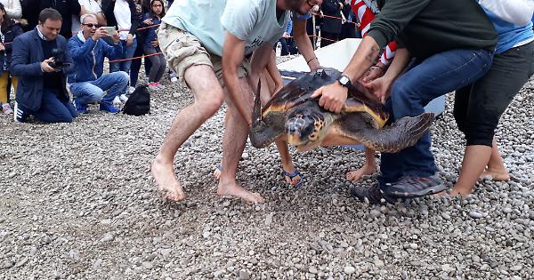 MASSA LUBRENSE. Hanno finalmente ripreso il largo le quattro tartarughe salvate quest'inverno dal Centro Tartanet dell'Area Marina Protetta di Punta Campanella. L'evento, che si è svolto stamattina sulla spiaggia di Puolo nel comune Bandiera Blu di Massa Lubrense, è stato seguito da oltre 100 persone. Presente anche la Capitaneria di Porto di Massa Lubrense e il tenente colonnello Aztori della Guardia di Finanza di Napoli . Le Caretta caretta, grazie alla segnalazione dei pescatori di Salerno, erano state recuperate nei mesi scorsi dagli operatori del Centro e immediatamente trasferite presso la struttura della stazione zoologica A.Dhorn a Portici. Erano disorientate e ferite al momento del salvataggio. Ognuna con la sua personale storia. Salvatore, maschio di grosse dimensioni, é stato ritrovato nella rete dai pescatori. Ora affronterà la stagione riproduttiva e sarà seguito attraverso un trasmettitore satellitare che gli è stato installato sul carapace. Prometeo, invece, è un esemplare molto giovane che aveva un pò di plastica nell'intestino. Calippo aveva molte ferite, una ventina, causate dall'accidentale cattura nella rete da pesca. L'ultima arrivata, Cicciotta, è stata recuperata a metà marzo e, tranne qualche piccolo problema di galleggiamento, non ha manifestato particolari disagi. " Reti da pesca, ami, plastica, impatti con imbarcazioni e le basse temperature del mare. Questi i pericoli maggiori per le tartarughe che restano ferite o intorpidite, soprattutto durante i mesi invernali - spiega Antonino Miccio, direttore del Parco Marino di Punta Campanella- Per questo è importante il lavoro di recupero e salvataggio, che è possibile grazie alla collaborazione dei pescatori e alla professionalità della Stazione Zoologica A.Dhorn" . In 10 anni di attività del Centro Tartanet di Punta Campanella, sono state recuperate e rimesse in mare circa 160 tartarughe. "Numeri importanti che hanno contribuito alla tutela della specie in Campania- osserva il Presidente del Parco Marino, Michele Giustiniani- Oggi è stata una bella giornata di mare con la partecipazione di moltissime gente. E questo è fondamentale perché la tutela del nostro mare riguarda tutti".