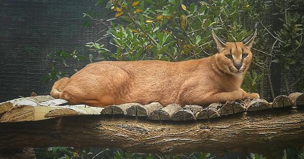 Attraverso il vetro si può osservare il suo spazio fatto di vegetazione varia, di tronchi e piante dove potersi arrampicare, ma ad orari stabiliti anche di arricchimento ambientale a cura dei Keeper per dare al caracal il giusto movimento ed attività, soprattutto nell’ora del pasto, che concilia attività fisica, mentale e ricerca del cibo, come in natura.