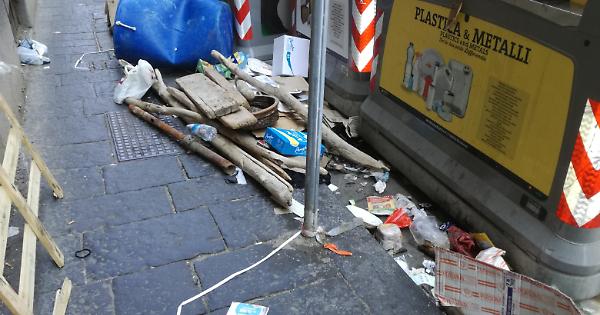 NAPOLI. Viene sversato ormai di tutto all'inizio di via Chiatamone, angolo via Ugo Foscolo. Questa volta è comparso finanche un bidone azzurro, quelli che, al largo di Castel dell'Ovo, "sostengono" i filari cozze. Come sia potuto arrivare lì, e chi l'abbia potuto depositare, è un mistero. Tutt'intorno, vicino ai cassonetti dell'immondizia, non mancano una decina di pali e tavole di legno, buste e cartoni. Subito dopo la pulizia degli operatori dell'Asìa, bastano pochi giorni e tutto torna come prima, rendendo peraltro impraticabile il marciapiedi, per cui i pedoni sono costretti - a loro rischio e pericolo - a camminare per strada