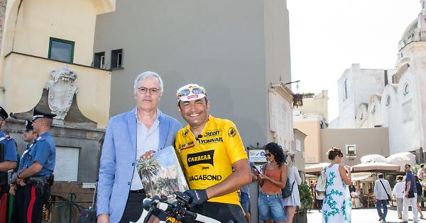 CAPRI. Nella leggenda, o almeno nella storia di Capri, Claudio Chiappucci è il primo campione del ciclismo a salire da Marina Piccola alla Piazzetta con il celebre campanile. Vestito come al Tour de France, maglia gialla da leader e cappellino con occhiali sulla visiera, El Diablo ha percorso i 2700 metri che separano la zona che si affaccia sui mitici Faraglioni all’ombelico del mondo tra turisti e vip, in un crescendo di entusiasmo. Testimonial di una due giorni che vuole rimarcare l’importanza del turismo sportivo, con dati in forte ascesa, e famiglie e persone che scelgono la località delle ferie in base anche allo sport preferito.