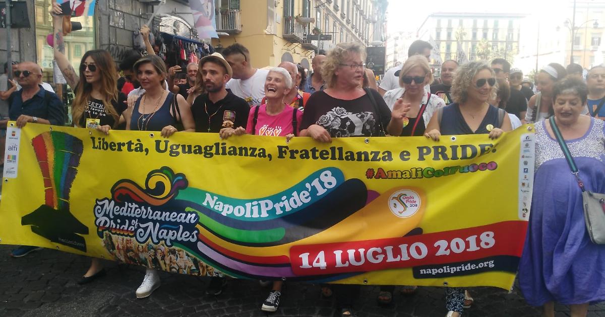 NAPOLI. Una folla colorata e allegra di migliaia di persone è partita da piazza Dante a Napoli per il Gay Pride 2018, sfilando poi per via Toledo per arrivare al Lungomare. Tra i partecipanti anche Francesco Mangiacapra, autore del dossier sui preti gay consegnato all'inizio dell'anno alla Curia di Napoli, che ha sfilato vestito da Cristo. «Dal Gay Pride di Napoli parte un messaggio per, non contro. Per le libertà civili, per l'uguaglianza, i diritti, per le persone, tutte uguali nei diritti ma tutte differenti, ognuna col proprio sentimento». Così il sindaco di Napoli Luigi de Magistris che ha sottolineato che il messaggio arriva «in una città di pace che vuole dare un contributo per costruire una comunità in cui trovare l'amore non il rancore, l'indifferenza e il razzismo. Un messaggio forte sempre e non perché oggi c'è Salvini al governo. Ci siamo sempre stati. Noi vogliamo costruire ponti di solidarietà e non mura di rancore».