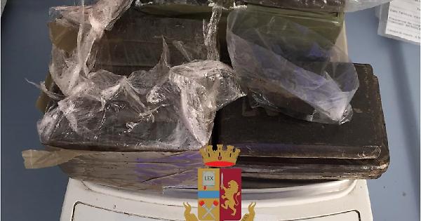 Adamo è stato condotto in ufficio per approfondire le verifiche ed ha dichiarato di essere domiciliato a Napoli presso l’abitazione paterna, dove è stata effettuata una perquisizione ex legis, che non ha sortito alcun risultato tranne la conferma che l’uomo non viveva presso l’abitazione dell’anziano genitore dove, peraltro, non vi era alcun effetto personale. Una foto di una ricevuta inviata ad un ente erogatore di energia elettrica trovata dai poliziotti nella galleria delle foto del suo cellulare, ha consentito di scoprire un secondo indirizzo, in via Colli Aminei che lui attribuiva ad una sua presunta compagna. Con un immediato controllo nell’abitazione aperta con le chiavi in possesso all’uomo, i poliziotti hanno trovato riposto nell’armadio, un borsone nero con il marchio Adidas nel quale erano stipati 14 panetti di sostanza marrone solida ed una busta di cellophane con sostanza erbacea verde.