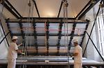 L'opera sarà nuovamente movimentata per essere collocata in posizione orizzontale, completando così l'intervento di restauro della superficie musiva.