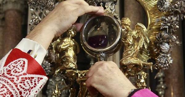 IL FULCRO DEI RITI. Si arriva così a mercoledì 19 settembre, solennità di San Gennaro. Dopo la celebrazione della prima messa alle ore 8, un prelato della Cappella del Tesoro procederà alla lettura della Passione di San Gennaro. Alle 9.45 il cardinale Sepe si recherà nella Cappella del Santo dove, con l'ausilio dell'abate, monsignor Vincenzo De Gregorio, del sindaco di Napoli e presidente della Deputazione di San Gennaro Luigi de Magistris e del vicepresidente della Deputazione Riccardo Carafa D'Andria, provvederà all'apertura della cassaforte che contiene il reliquiario con le ampolle del sangue. Le ampolle e il busto saranno portati in processione sull'altare maggiore della Cattedrale dove il cardinale presiederà la celebrazione eucaristica solenne al termine della quale, se avverrà l'auspicata liquefazione del sangue, darà l'annuncio dell'evento. Dalle ore 16 alle 18.30 le ampolle con il sangue verranno offerte alla venerazione dei fedeli. Da giovedì 20 al 27 settembre si svolgerà l'Ottavario di ringraziamento: alle ore 9 esposizione delle reliquie e celebrazione eucaristica nella cappella del Santo, dalle 9.30 alle 12.30 e dalle 16.30 alle 18.30 venerazione delle reliquie in cattedrale e celebrazione della messa alle ore 10, alle 12 e alle 18.30.