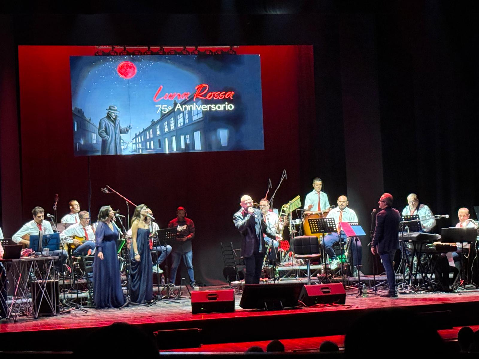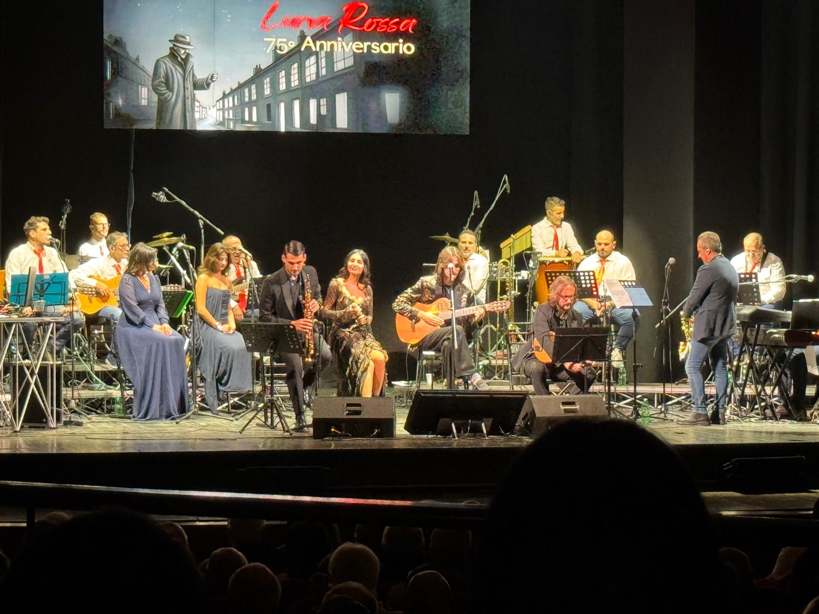 Lo spettacolo “Buon compleanno Luna Rossa” si è aperto proprio con una innovazione: l’uso dell’intelligenza artificiale per fare cantare – come fosse dal vivo – Giorgio Consolini, che fu il primo interprete dell’amatissimo brano 75enne. Lo spettacolo si è infine chiuso con una interpretazione di Raiz.