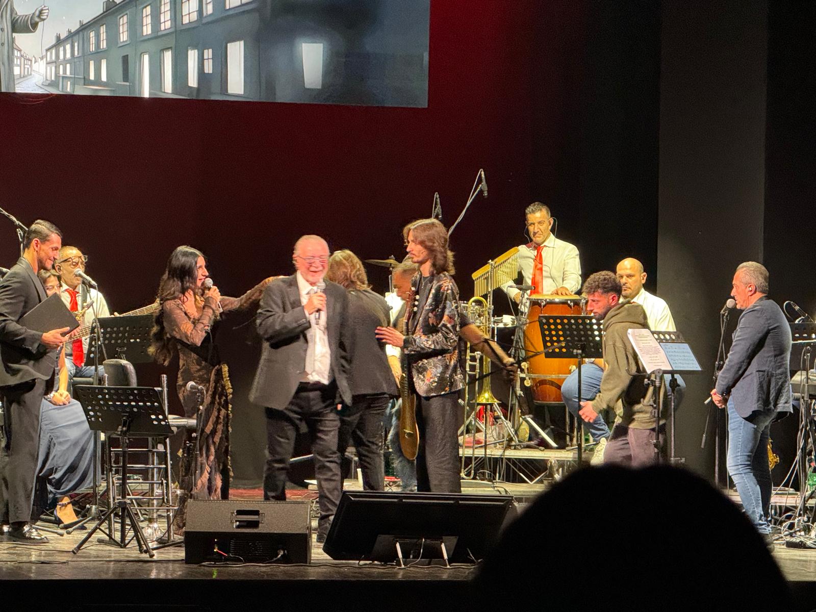 E, sopra le note suonate, uno schermo ha ridonato ai presenti in sala i volti più amati di un’epoca in cui la melodia partenopea dominava i repertori di Claudio Villa, Milva, ma anche Frank Sinatra, Ella Fitzgerald e Dean Martin.