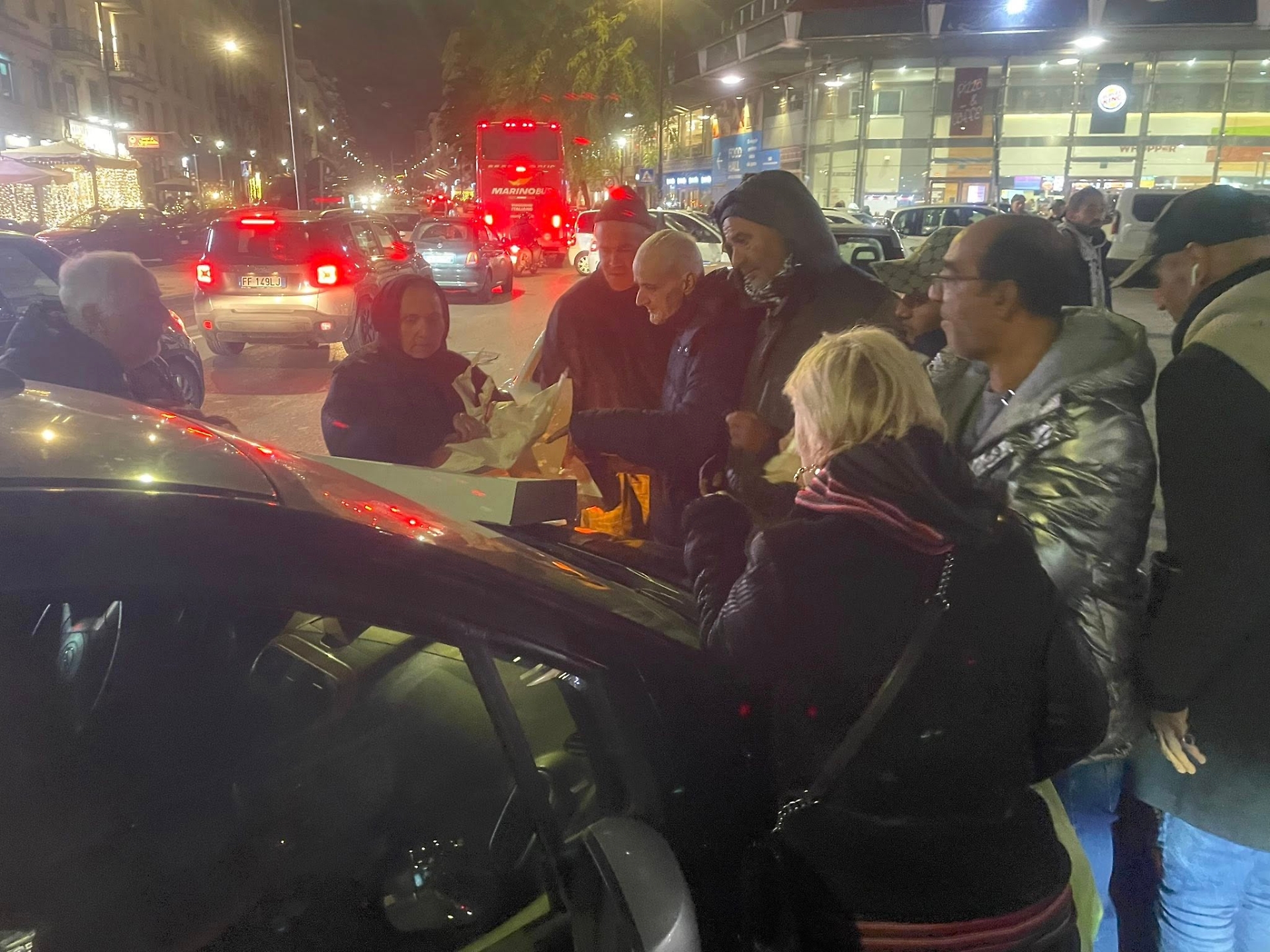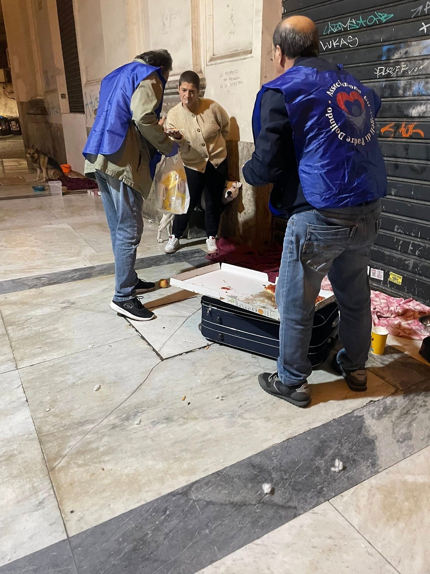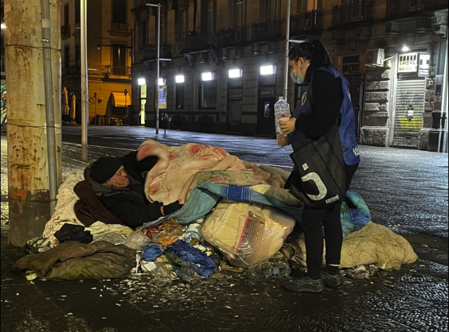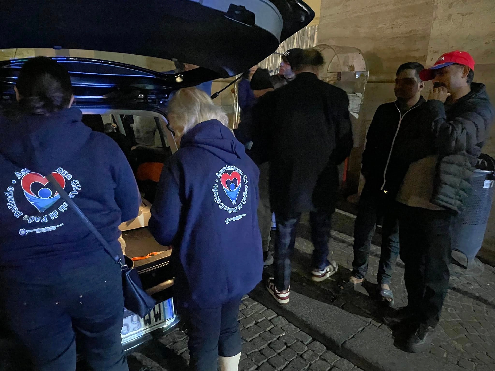 Cibi distribuiti in strada dall'associazione Angeli di Padre Dolindo
