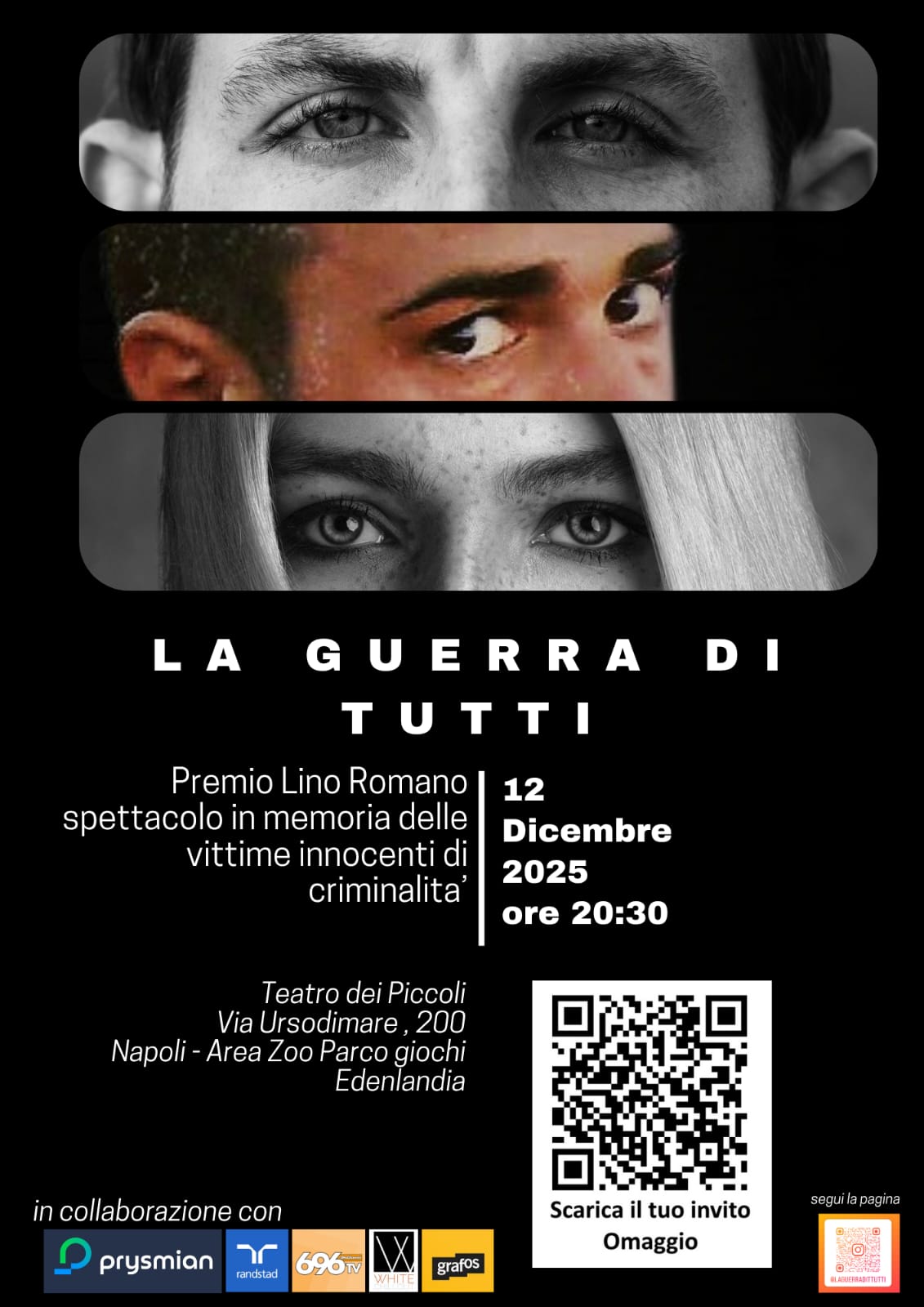 NAPOLI. Venerdì prossimo, torna al Teatro dei Piccoli di Napoli “La guerra di tutti – Premio Lino Romano”, giunto ormai alla sua VIII edizione. Alle 21 si alzerà il sipario sul palco della sala di Fuorigrotta (via Usodimare, Mostra d’Oltremare – ingresso lato zoo –