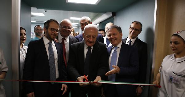 FRATTAMAGGIORE. È stato tagliato oggi il nastro del nuovo reparto di Rianimazione dell’ospedale di Frattamaggiore, una struttura attesa da trent’anni dal territorio. La cerimonia è avvenuta alla presenza del Presidente Vincenzo De Luca, del Direttore Generale dell’ASL Napoli 2 Nord Antonio d’Amore, del Sindaco di Frattamaggiore Marco Del Prete e del Vescovo di Aversa Angelo Spinillo. Il nuovo reparto, dotato di cinque posti letto, di cui uno dedicato ai pazienti in isolamento, può contare su tecnologie di ultima generazione e prenderà il via operativamente già il prossimo lunedì primo aprile, accogliendo i primi pazienti.