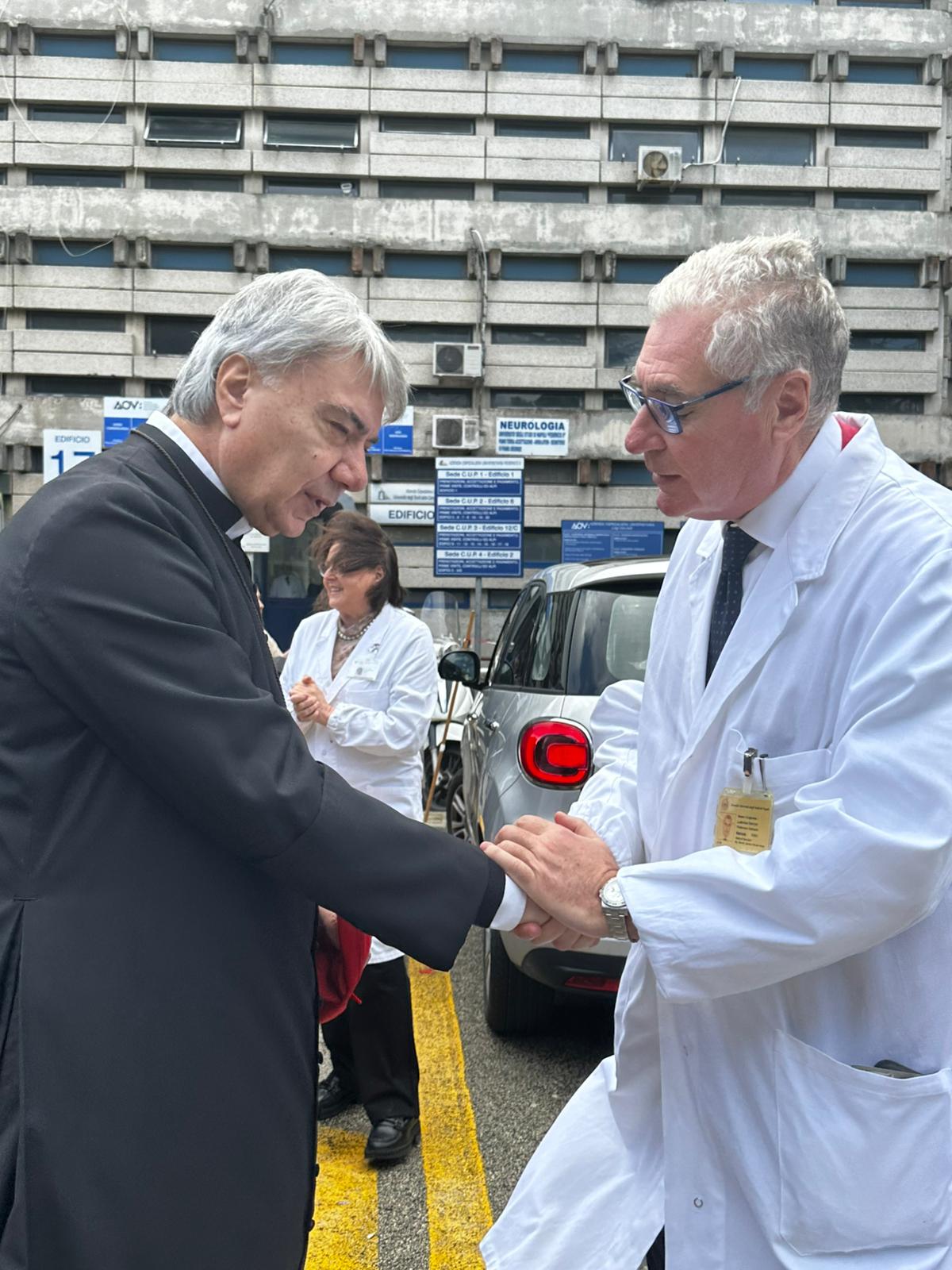 Il Cardinale Battaglia, noto per la sua instancabile attenzione agli ultimi, si è soffermato accanto ai malati dei reparti del padiglione chirurgico con pazienza e sincera empatia. Al capezzale di ciascun degente ha offerto parole di consolazione e sguardi di speranza, ricordando come la cura del corpo non possa prescindere dal sollievo dello spirito. La sua spiritualità autentica ha coinvolto l’intero personale — dai medici ai vertici amministrativi — creando un clima di intensa partecipazione.