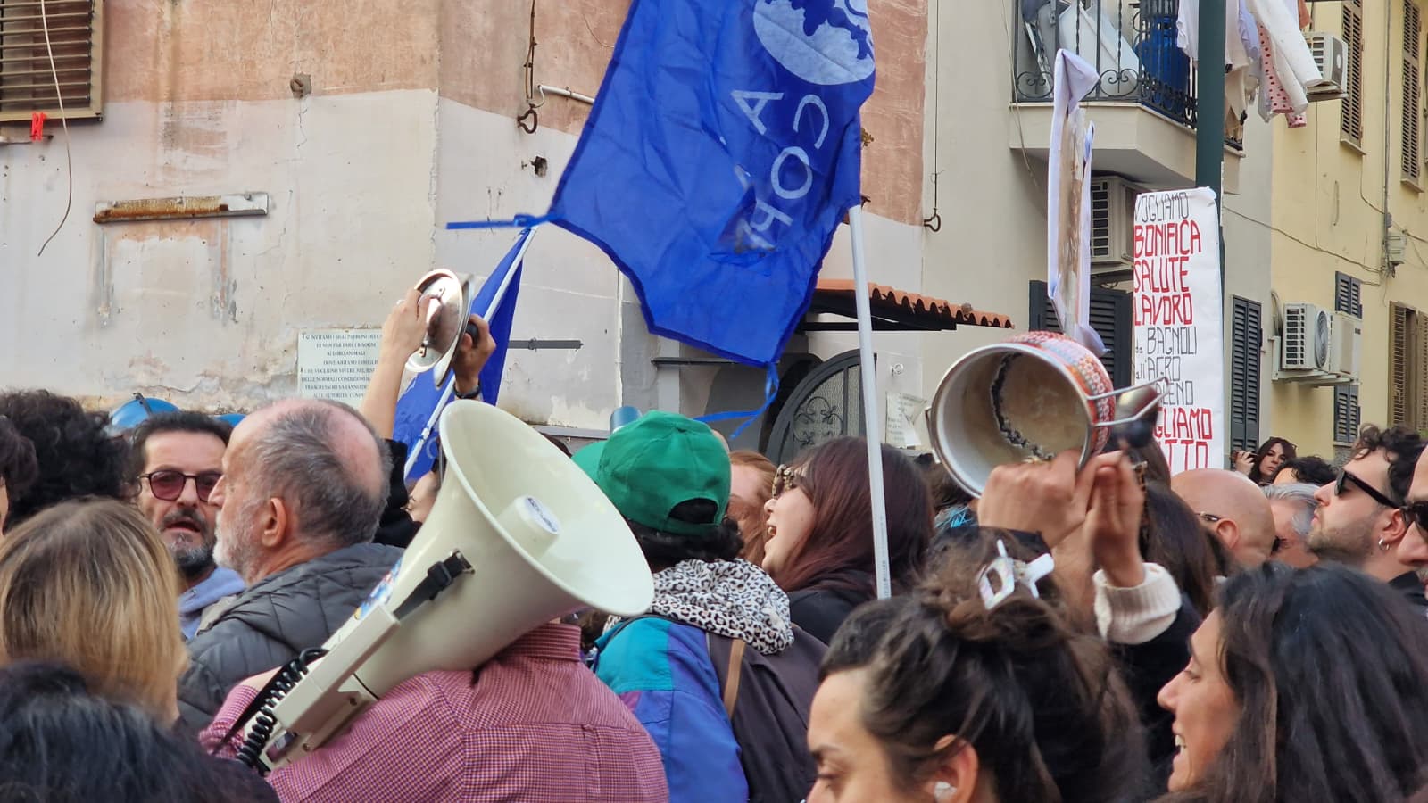 Gli attivisti di Bagnoli sono all'esterno della sede della X Municipalità impugnando pentole, coperchi e fischietti mentre all'interno della struttura si sta svolgendo il Consiglio comunale monotematico dedicato alla rigenerazione del quartiere e ai lavori dell'America's Cup. Si ascoltano cori per invocare le "dimissioni" del sindaco di Napoli Gaetano Manfredi e della presidente del Consiglio Giorgia Meloni.