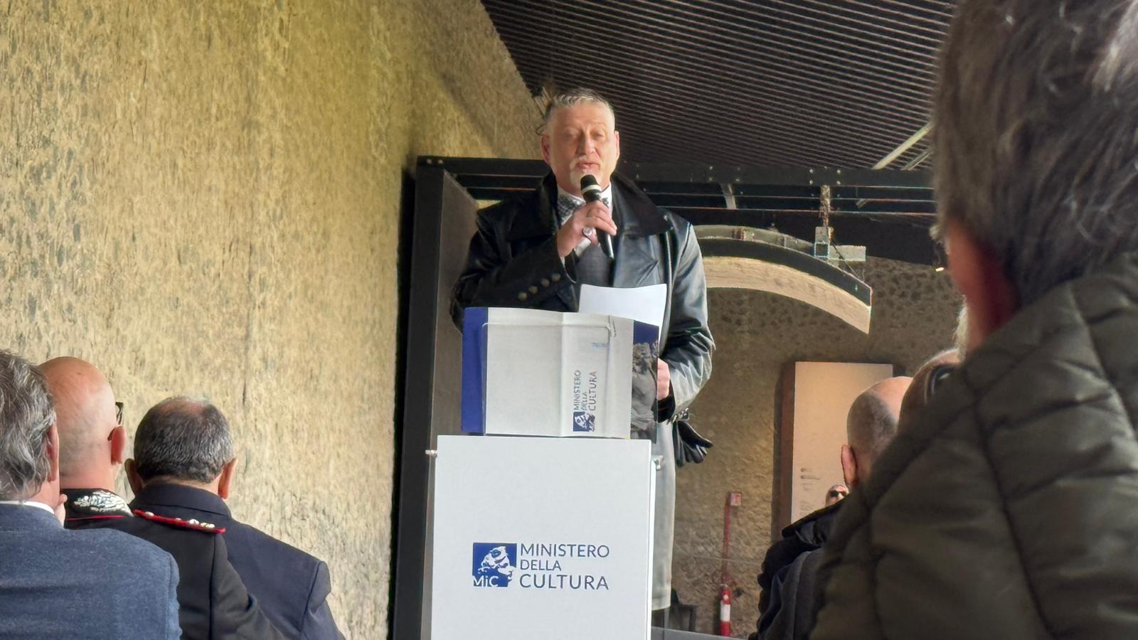 All'inaugurazione ha preso parte anche il ministro della Cultura Alessandro Giuli. «In questo fermo immagine c'è rispetto. Questo piccolo sacrario, una galleria del dolore al cui ingresso c'è scritto 'silenzio', dona ai visitatori un verismo della memoria che combina la pietas alla tecnologia, con la capacità di operare una restituzione fredda di un quadro tragico e spettacolare. In esso c'è un progetto molto coraggioso e molto potente di rendere al visitatore l'immagine del dolore, con i cadaveri di una morte acerba - così il ministro - Ho visto un bambino, una coppia, forse due amanti sui quali la sorte ha sparso la cenere. La pietas con cui è stato allestito questo percorso è giustizia, intesa come rispetto che meritano tutte le tragedie umane».