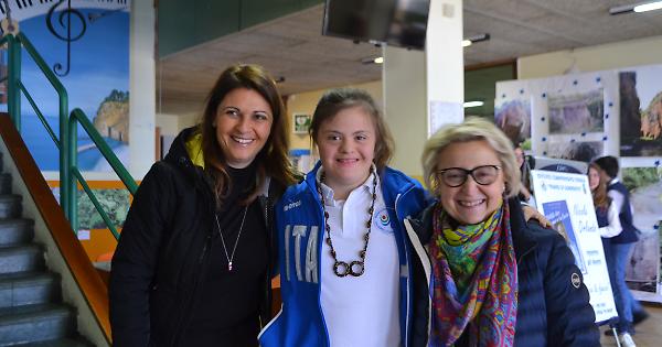 PIANO DI SORRENTO. Ha praticamente contagiato tutti con la sua allegria e la sua simpatia, ma soprattutto con la sua incredibile forza di volontà. E così, venerdì mattina, Nicole Orlando, atleta parolimpica, accompagnata dalla mamma Roberta ha incontrato gli studenti dell’Istituto comprensivo, presso la sede “M. Massa”, nell’ambito di un progetto che ha coinvolto tutte le classi seconde della scuola secondaria di primo grado. Presenti dell’assessore Rossella Russo, la Dirigente Scolastica Maria Rosaria Sagliocco e na folta rappresentanza di docenti. Sorridente, espansiva e con una grinta eccezionale, quella stessa che le ha consentito, da un punto di vista fisico di ottenere incredibili risultati sportivi, non si è sottratta alle numerose domande degli alunni, dispensando sorrisi ed abbracci affettuosi. “Una ragazza piena di gioia di vivere - ha esordito entusiasta la Dirigente Sagliocco - una ragazza che ha coraggio, forza, determinazione, volontà e nella sua vita ha davvero fatto tanto. È la testimonianza di “vietato dire non ce la faccio”. Nicole è una miniera di simpatia e di forza, di una forza che viene da una famiglia straordinaria. Ad associarsi alle parole della Preside, anche l’assessore alla P.I., “La storia ci insegna che le pagine più belle sono state scritte da persone che non si sono mai arrese, che non hanno mai detto “basta” e tu oggi testimoni a noi tutti che la storia si può scrivere semplicemente non arrendendosi. Ed è una bella pagina di storia quella che tu stai scrivendo”.Un’occasione unica per gli allievi carottesi che li ha portati a confrontarsi con una giovane atleta che ha fatto del suo motto, “Vietato dire non ce la faccio” un obiettivo vitale. “Credete sempre nei vostri sogni”, ha detto Nicole Orlando ai ragazzi, “e realizzateli a tutti i costi”.