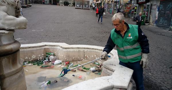 NAPOLI. Monumenti come discariche, la Fontana di Monteoliveto ricettacolo di rifiuti viene ripulita per l'ennesima volta. Verdi: “Boccette di Paracodina tra i rifiuti, è allarme per il nuovo sballo dei giovanissimi. Urgente mettere la recinzione”. "Più volte abbiamo sottolineato lo stato di indecenza in cui versa la storica Fontana di Monteoliveto, in cui vengono sversate decine e decine di bottiglie e scarti vari, risultato di abitudini tribali di alcuni giovani che scelgono la fontana di re Carlo II come punto di ritrovo. L’irriverenza delle nuove generazioni nei confronti dei tesori artistici della città è sconcertante. Chissà perché non riescono a essere più civili. Chissà perché i rivenditori di alcool della zona non provvedano a sistemare dei contenitori per i rifiuti comprese oltre a bottiglie di alcolici e super alcolici anche di deiezioni canine raccolte in apposite bustine da passeggio. Ma c’è un dato allarmante oltre l’assenza di senso civico. Sono numerose le boccette di Paracodina sciroppo lasciate sul bordo della Fontana. Il farmaco a base di Codeina è un oppiaceo potentissimo che accompagnato a fiumi di alcool è una miscela pericolosissima. Una moda che impazza in Italia ed è un vero allarme per il nuovo sballo dei giovanissimi. È necessario mettere la recinzione attorno alla fontana il prima possibile”. Lo ha detto Francesco Emilio Borrelli, consigliere regionale dei Verdi che stamattina ha presenziato all'ennesima pulizia del monumento effettuato da un volontario della cooperativa 25 giugno.