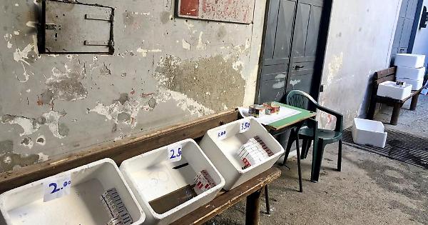 Un banchetto con i prezzi esposti nel palazzo di uno dei fermati
