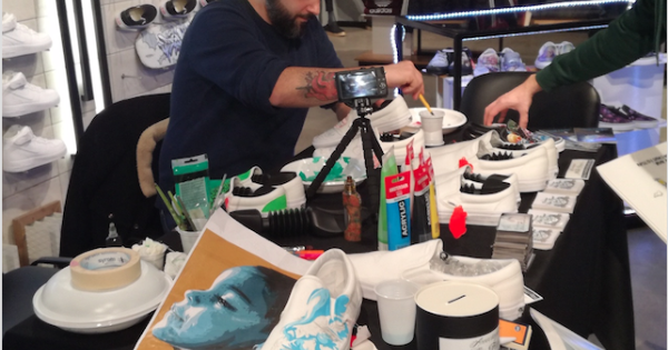 NAPOLI. Una scarpa come superficie per dipingere, trasformata in oggetto d’arte. È l’ idea di “Ink of Shoes” (letteralmente: inchiostro sulle scarpe), organizzata dalla “Mattia Fagnoni Onlus”, che si chiude oggi al “Rush Store” di Napoli (Via Diaz, 36). All’iniziativa - il cui ricavato è destinato alle famiglie di bambini affetti da malattie rare - hanno aderito 35 artisti di tutto il mondo. Quattro di essi si sono alternati nel “live painting” (pittura dal vivo) sotto gli occhi degli incuriositi clienti dello Store.