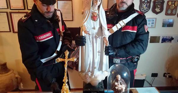 FORIO D'ISCHIA. Furti sacrileghi nelle chiese di Ischia, carabinieri trovano il ricettatore: in casa sua crocifisso laccato e tre statue sacre. Dopo il furto, l’altro ieri, del crocifisso laccato d’oro dall’altare maggiore della chiesa madre di Forio, i carabinieri della compagnia di Ischia hanno denunciato per ricettazione un pensionato 65enne di Lacco Ameno. Perquisendo la sua abitazione, i carabinieri della stazione di Forio hanno rinvenuto anche altre tre opere d’arte provento di furto: una statua della Madonna di Fatima benedetta da Papa Giovanni Paolo II rubata nella chiesa di San Sebastiano Martire di Forio, una statua di legno e ceramica raffigurante San Giovan Giuseppe della Croce e una statua del Gesù Bambino, queste ultime rubate dalla chiesa Santa Maria delle Grazie di Lacco Ameno. Tutti gli oggetti saranno restituiti agli aventi diritto.