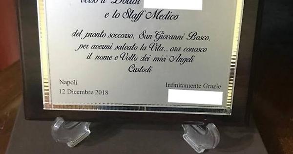 NAPOLI. Non solo formiche all'ospedale San Giovanni Bosco di Napoli, ma anche buona sanità. La prova è la targa che un paziente ha voluto dedicare ai medici. «A riconoscenza e stima verso lo staff medico del pronto soccorso San Giovanni Bosco per avermi salvato la vita. Ora conosco il nome e il volto dei miei angeli custodi». La targa porta la data del 12 dicembre 2018, quando l'ospedale era già stato travolto dall'emergenza formiche. La foto è stata diffusa da “Nessuno tocchi Ippocrate".