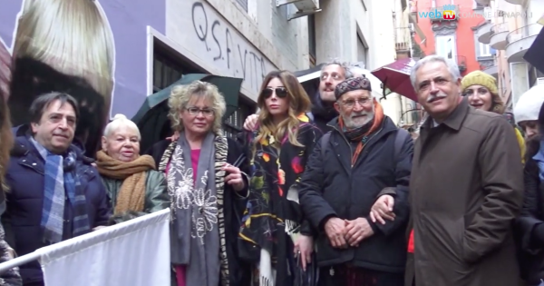 NAPOLI. In via Concezione a Montecalvario il presidio di solidarietà promosso dal Comune contro l’atto omofobo e vandalico che ha deturpato l’opera muraria di Vittorio Valiante, la “Tarantina Taran”.