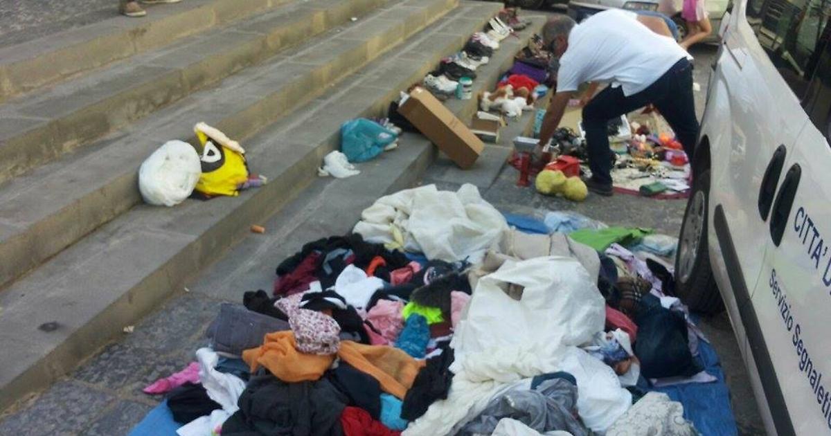 ERCOLANO. Questa mattina, nel corso di un’operazione congiunta tra carabinieri e polizia municipale nell’area del mercato di Pugliano, è stata sequestrata merce che veniva venduta in strada senza autorizzazione e priva di qualsiasi certificazione. Alla vista delle forze dell’ordine, coordinate dal tenente Gianluca Candura e dal comandante Francesco Zenti, i responsabili di queste attività abusive si sono dati alla fuga, abbandonando la merce sui marciapiedi. In totale, sono state sequestrati e distrutti svariati quintali di merce tra abiti usati e suppellettili di vario genere.