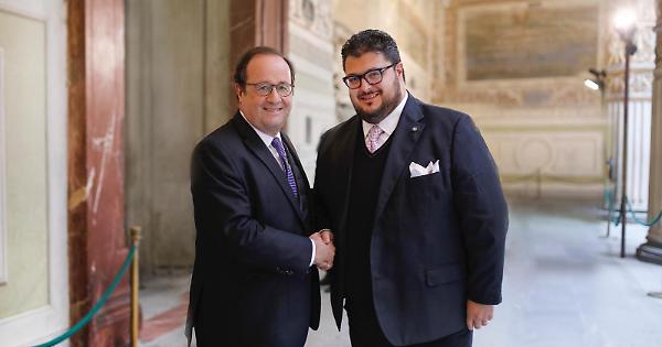FIRENZE. L’ex presidente della Repubblica francese François Hollande (nella foto con il giornalista napoletano Alessandro Iovino) è intervenuto a Firenze in occasione della sesta conferenza nazionale dell’Aici, l’Associazione delle Istituzioni di Cultura Italiane presieduta da Valdo Spini, parlamentare di lungo corso e già ministro. Hollande, intervistato tra gli altri da Alessandro Iovino, ha manifestato tutta la sua preoccupazione per l’antisemitismo che si diffonde in Europa ed ha auspicato che nel piano finanziario pluriennale 2021-2027 si possa allargare il numero di beneficiari di progetti culturali, come per esempio l’Erasmus. L’ex capo di stato francese e’ stato accolto dal Sindaco di Firenze Dario Nardella e dal ministro dei beni culturali Dario Franceschini. Un grande dispiego di forze dell’ordine a Piazza delle Singnoria a Firenze per l’arrivo in concomitanza, anche se per due eventi differenti, non solo dell'ex presidente Hollande, ma anche del leader della Lega Nord Matteo Salvini che, comunque, non si sono incrociati.