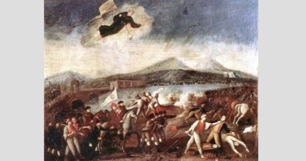 Il sacerdote Biagio Rinaldi, di Scalea, esponeva a Ferdinando IV di Borbone il suo “Piano per lo riacquisto del Regno” e si dichiarava pronto ad armare entro un mese “un corpo di spedizione per dar sesto alla Capitale e mandare alle ceneri tutti gli infedeli e felloni”. Lo riportano fonti d’ epoca. Non aspettava che l’ordine del Sovrano “per lo radunamento di genti atte all’armi” sotto il segno del Crocifisso. Era il 13 gennaio 1799. Le truppe francesi si preparavano con l’aiuto dei giacobin, ad entrare a Napoli. L’8 febbraio a Punta Pezzo, vicino Scilla, sbarca con soli sette uomini il Cardinale Fabrizio Ruffo, nominato da Ferdinando IV Vicario Generale del Regno. Ordina ai suoi di munirsi “senza attrasso (ritardo, ndr) di tempo del segno di una bianca Croce nella parte destra del cappello, o berretto, per dimostrare così di essere veri cristiani, fedeli a Dio e al loro legittimo sovrano”. Il giorno successivo gli armati sono 42, e nel giro di cinque giorni si riescono a formare tre compagnie di truppa regolare di 70 uomini ciascuno, che il Ruffo provvede di divise e di paga giornaliera, come un vero esercito. Da Sant’ Eufemia giungono a Scilla altri 400 uomini, e il 13 febbraio può avere inizio la marcia dell’Armata Cristiana e Reale. Appena i parroci e i governatori diffondono il proclama del Cardinale, i paesi si ”realizzano” spontaneamente ripristinando le insegne borboniche e la Croce al posto degli alberi della Libertà, così, quando le truppe sanfediste vi entrano, le popolazioni hanno già preso le armi e costretto i francesi alla ritirata. La propaganda giacobina insinuerà che ciò accade a causa del terrore suscitato dai sanfedisti, descritti come “avanzi di galera” al seguito di un “Cardinale mostro”. In realtà, all’appello del Ruffo accorsero tutti gli strati della popolazione: medici, avvocati, notai, nobili, ma soprattutto contadini, quei “paysans de la Calabre” che nel 1806 avrebbero resistito strenuamente alle armate napoleoniche. La reazione fu trasversale, unendo, come in ben pochi altri momenti della storia del Regno, sovrano e popolo, ceto civile e “masse”. Dopo tre mesi di inarrestabili vittorie, la “riconquista” ripristina le insegne reali, ricolloca i simboli religiosi, restituisce le chiese al culto, sgombera i conventi occupati dai soldati e vi riporta i religiosi. Le popolazioni si riappropriano della loro identità e tradizione. Agli inizi di giugno, le truppe sono molto vicine alla capitale del Regno, il Governo repubblicano sente prossima la sconfitta e proclama il coprifuoco, ordinando ai napoletani di non uscire dalle case durante il cannoneggiamento della città da Forte Sant’Elmo all’ingresso delle truppe sanfediste. Ma un gruppo di calabresi, giocando d’anticipo, attacca il forte di Vigliena, dalla parte orientale, creando il panico tra i giacobini, che si danno alla fuga. È il 13 giugno 1799, l’Armata della Santa Fede entra a Napoli.