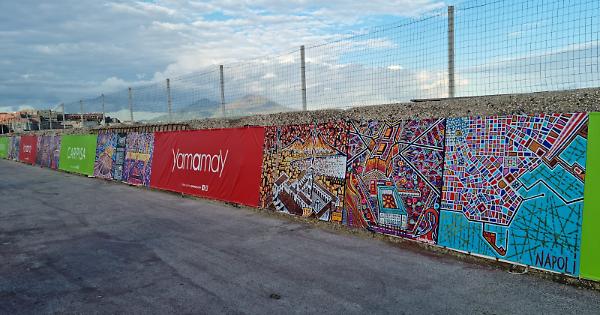 Tutti simboli iconici del patrimonio immateriale in cui Napoli si identifica, raccontati attraverso un’esplosione di gioia vulcanica che passano anche attraverso le rappresentazioni di San Gennaro e Diego Armando Maradona.