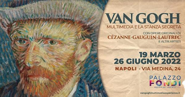 Apre a Napoli il 19 marzo e sino al 26 giugno nel monumentale Palazzo Fondi, la mostra Van Gogh multimedia e La Stanza segreta, ideata e organizzata dalla società Navigare Srl. Dopo l’ampio successo tributato dal pubblico in altre città italiane, la mostra arriva a Napoli in una versione inedita e rinnovata, con l’aggiunta di una speciale sezione di opere originali provenienti da collezioni private e firmate da grandi artisti del periodo impressionista francese: Paul Cézanne, Henri de Toulouse-Lautrec, Fernand Cormon, Émile Bernard ed altri.