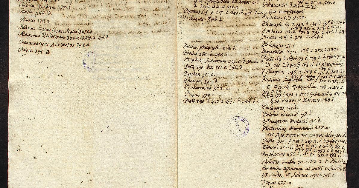 Si tratta di un ‘quadernetto’ formato da quattro mezzi fogli, ripiegati nel mezzo in modo da ottenere otto facciate, recanti una lunga e fitta lista alfabetica di autori antichi e tardoantichi (circa 160 i lemmi), ciascuno dei quali seguito da una serie di riferimenti numerici. (oltre 550 nel complesso). Siamo di fronte ad uno scritto di Leopardi appena sedicenne, assiduo frequentatore della biblioteca paterna, che realizza un accurato e capillare spoglio dell'Opera omnia di Giuliano imperatore, ricorrendo all'autorevole edizione di Ezechiel Spanheim, apparsa a Lipsia nel 1696.