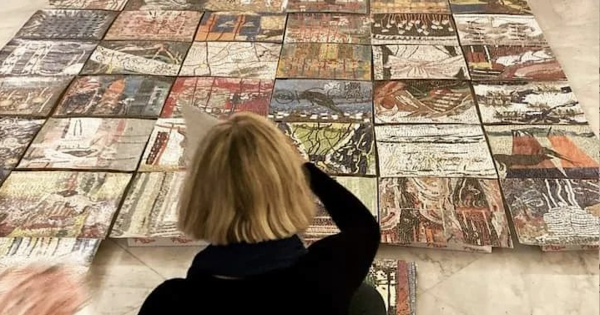 Più di 50 ore per trasformare un singolo recipiente per pizza, cibo identitario della napoletanità, in un variopinto mosaico di carta: l'artista francese si è ispirata ai reperti provenienti dalle città vesuviane e ai manufatti che abbelliscono altri centri mediterranei per creare un'installazione composita, che misura 9mx3m e "assembla" rappresentazioni della natura e immagini astratte. Domenica prossima (ore 11-13), adulti e bambini potranno darsi appuntamento nella sala dell'Ercole Farnese per avvicinarsi alla tecnica del collage con un laboratorio ad hoc condotto proprio da Peyron; il viaggio non finirà qui, perché l'artista tornerà al MANN anche l'8 e il 9 giugno, sempre con la consolidata formula installazione e momento didattico, per colorare i pavimenti delle sale museali con i propri mosaici.