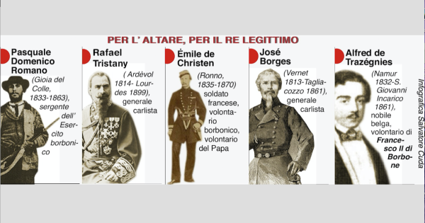 La Storia ufficiale ha sempre malamente confuso la figura del legittimista con quella del ribelle, del fuorilegge, del partigiano e soprattutto del brigante. Una confusione strumentale finalizzata ad oscurare le vere ragioni che mossero uomini integerrimi, di alta cultura, provenienti dalle migliori Accademie militari d’Europa, spesso nobili e benestanti, a venire in Italia a combattere per un ideale. L’origine straniera dei legittimisti non era esclusiva, ve ne furono anche di italiani, ma anche essi sono stati oscurati dalla Storia per non offuscare “la medaglia d’oro del Risorgimento”. Un esempio per tutti è il famoso Pasquale Domenico Romano, originario di Gioia del Colle (Bari), militare dell’Armata delle Due Sicilie che, alla disfatta dell’Esercito, si rifiutò di deporre le armi e condusse una guerra legittimista che diede filo da torcere alle truppe piemontesi. Non era nobile né benestante, ma si batté fino alla morte per un ideale che lo accomuna alla schiera dei più nobili e determinati comandanti-cavalieri del tempo. Ma cosa distingueva i legittimisti dai briganti? Anche se il fine era il medesimo - combattere per scacciare un nemico venuto con la forza delle armi a sottomettere uno stato libero e indipendente - le motivazioni che li movevano ed i metodi di guerra adottati erano diversi. I briganti si battevano disperatamente per difendersi da un nemico feroce e sanguinario che li stava spogliando non solo della libertà e del proprio Stato, ma anche del bene primario di diritti posseduti da secoli nell’uso civico e l’ enfiteusi della terra. I legittimisti si battevano per un ideale più profondo e politico, che faceva di quella guerra non solo una lotta impari tra due schieramenti in armi, ma una contesa tra due mondi totalmente contrapposti. Due modi diversi di concepire la Patria, il re, la religione, l’onore militare, la società e la famiglia. Le azioni eroiche dei legittimisti raggiunsero i più alti ideali romantici, gesta inconcepibili in un esercito moderno, come quello piemontese, che non esitava ad appiccare il fuoco ai paesi ed a fucilare per rappresaglia intere popolazioni. Le regole di guerra dei soldati legittimisti erano rigorose: non violare le donne e le case; non uccidere un nemico disarmato; punire i propri uomini rei di azioni non cavalleresche e lontane dall’etica legittimista. Di quest’ultima regola fu esempio il Generale Rafael Tristany, valoroso comandante spagnolo, che operava tra l’Abruzzo ed il confine con lo Stato della Chiesa. Egli condannò alla fucilazione uno dei suoi più validi capobanda, il famoso Luigi Alonzi, detto Chiavone, che, infischiandosene dei valori dei legittimisti, colpì più volte le case e le famiglie dei liberali filo-piemontesi. Nell’ottica della guerra moderna, e della nuova regola d’ingaggio del “fine che giustifica i mezzi”, quella fucilazione non aveva senso, come non ebbe senso agli occhi dei nemici il tuffarsi nelle acque del Garigliano dei soldati napoletani per salvare i garibaldini in procinto di affogare. Il più nobile dei legittimisti venuti a difendere il Sud fu senza dubbio il comandante spagnolo José Borges. Entrato in contrasto con il capo dei briganti lucani Carmine Crocco, per i metodi da questi adottati nella guerriglia, rendendosi conto che le sue regole di combattimento in quel contesto erano perdenti, decise di abbandonare la sua guerra. Con pochi fedelissimi si spostò dalla Lucania nel Lazio, attraversando a piedi i crinali montani innevati nel tentativo di raggiungere Roma per riferire al Re Francesco II in esilio. Ma a pochi chilometri da confine fu arrestato e poi fucilato a Tagliacozzo (L’Aquila) insieme ai suoi soldati. Prima di essere ucciso si fece il segno della Croce e fiero gridò al plotone: “Soldati! Mirate al cuore non al volto”. Anche questa era una regola legittimista dell’antico onore militare.