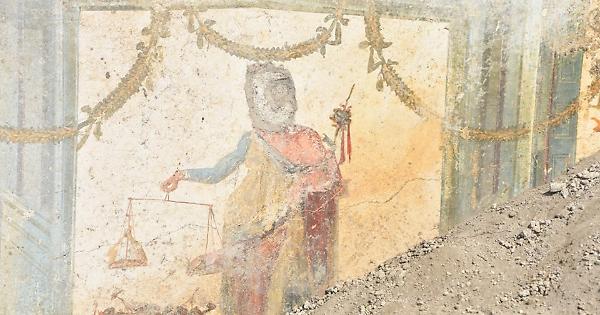POMPEI. Una dimora di pregio su via del Vesuvio con stanze elegantemente decorate e all'ingresso un Priapo affrescato, in atto di pesare il membro su una bilancia. E' quanto emerso nel corso dei lavori di riprofilatura dei versanti della Regio V che affacciano sulla via di Vesuvio, nell'ambito del cantiere dei nuovi scavi. Le operazioni in corso rientrano nel più ampio intervento di messa in sicurezza dei fronti di scavo, che delimitano i 22 ettari di area non scavata di Pompei, previsto dal Grande Progetto Pompei e che interesserà circa 3 km di fronti . La figura di Priapo, a Pompei ben conosciuto per la raffigurazione che campeggia all'ingresso della casa dei Vettii, oggi appare per la seconda volta in questa domus poco distante. Dio della mitologia greca e romana, era secondo buona parte delle fonti, figlio di Afrodite e di Dioniso. (Leggende minori lo vogliono invece figlio di Afrodite e di Ermes o Ares, o Adone o Zeus). Era, gelosa del rapporto adulterino di Zeus con Afrodite, si vendicò con Priapo e gli diede un aspetto grottesco, con enormi organi genitali. Il fallo, così spesso raffigurato in affreschi e mosaici dell'epoca, era ritenuto origine della vita, e per gli antichi romani un simbolo apotropaico, utilizzato contro il malocchio o per auspicare fertilità, benessere, buon commercio e ricchezza. Non è un caso, difatti, che poco oltre un altro fallo in tufo grigio dipinto è emerso, lungo la strada, su una parete del vicolo dei balconi.