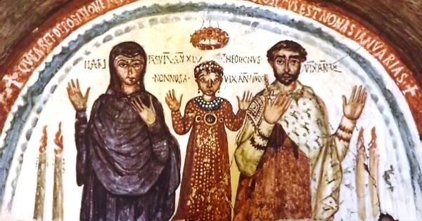 Affresco all'interno delle Catacombe di San Gennaro