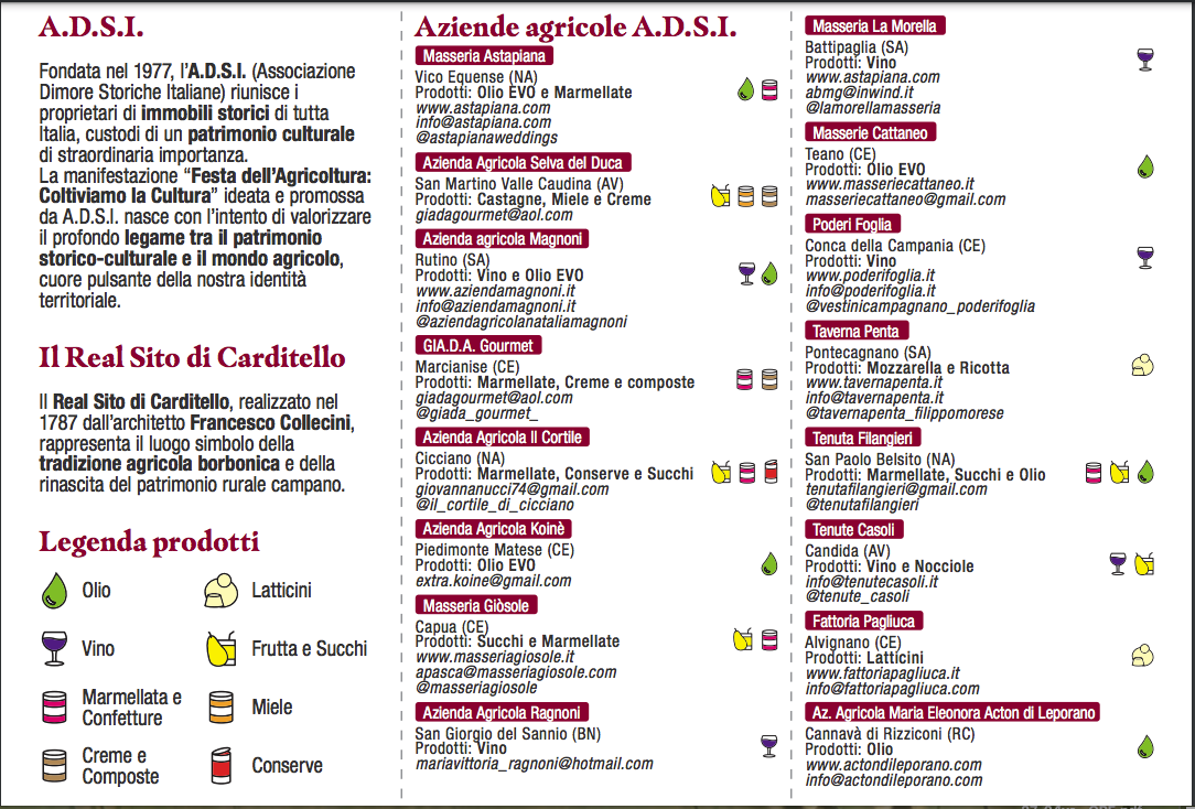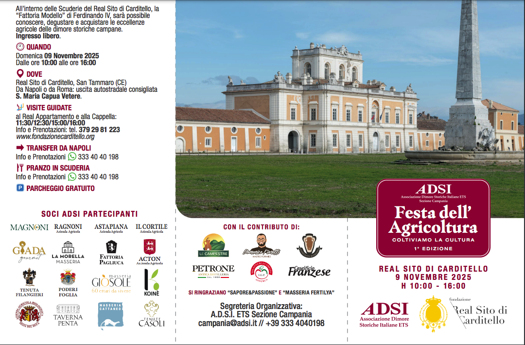 SAN TAMMARO (Caserta). Festa della Agricoltura A.D.S.I. Campania nelle Scuderie del Real Sito di Carditello, il 9 novembre a San Tammaro (CE), Fattoria Modello del Re Ferdinando IV di Borbone.