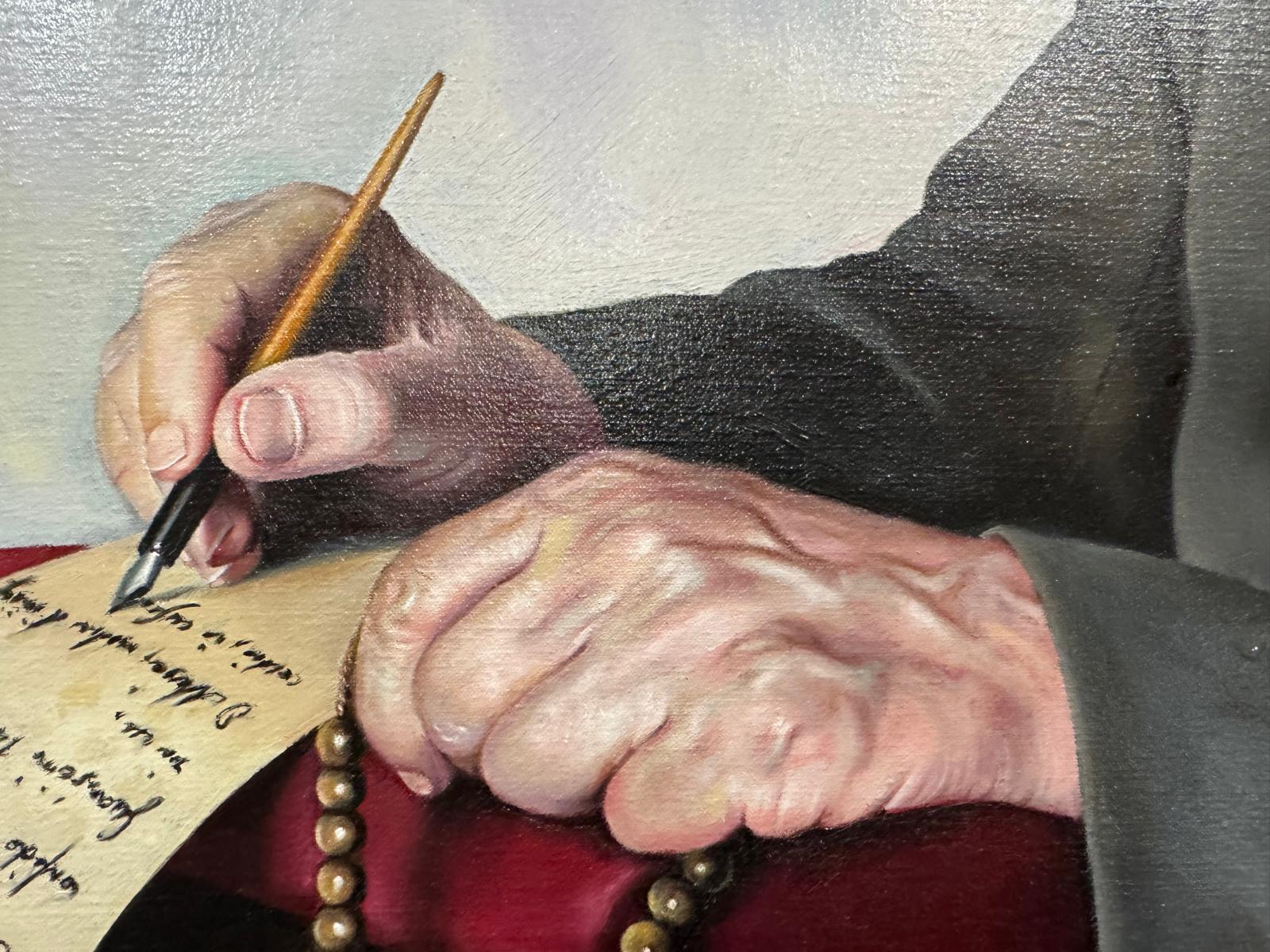 È stata iniziativa di Stefano Juliano, cavaliere Costantiniano, commissionare il quadro di don Dolindo alla pittrice spagnola Beatriz Barrientos, particolarmente ispirata nel raffigurare l’umilissimo, minuscolo e perseguitato pretino del quartiere Salvator Rosa in estatico atteggiamento di preghiera: rosario stretto in una mano e la penna su un foglio vergato dalle sue riflessioni e preghiere. Erano queste, infatti, alcune delle sue caratteristiche di santità, come descritte stamattina nel convegno dedicato alle sue doti di “sacerdote e profeta dell’abbandono a Dio”.