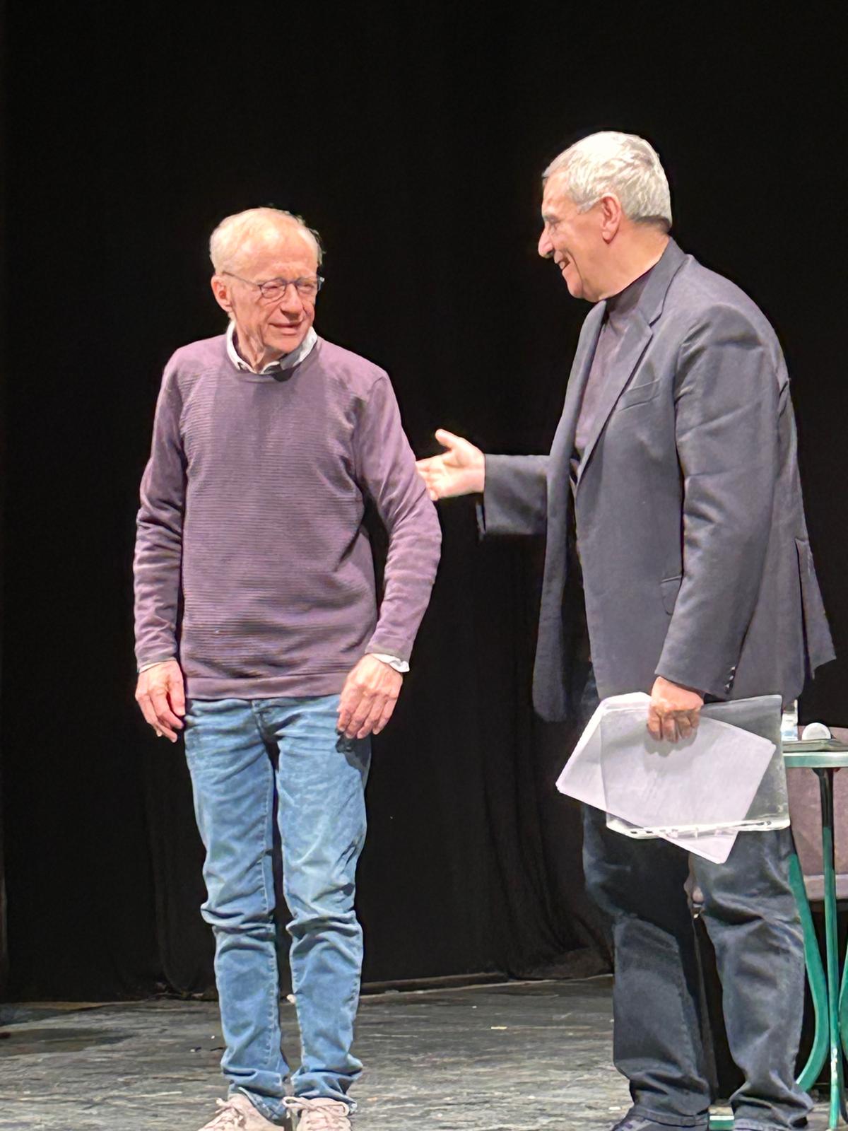 Il Teatro Sannazaro è gremito, un’attesa quasi fisica riempie la sala. Maurizio de Giovanni e David Grossman, il noto giornalista israeliano, siedono uno di fronte all’altro, ma sembra piuttosto che stiano camminando insieme dentro le parole. L’intervista diventa subito dialogo, confidenza, necessità condivisa. Grossman lo dice quasi sottovoce, parlando dei figli e del tempo presente: «Il linguaggio dei nostri figli è cambiato. Ero felice di vedere mio figlio Jonathan capire la lingua, ma allo stesso tempo capivo che stava perdendo la capacità di cogliere ciò che non è linguaggio». È una frase che resta sospesa nell’aria, come una ferita gentile.