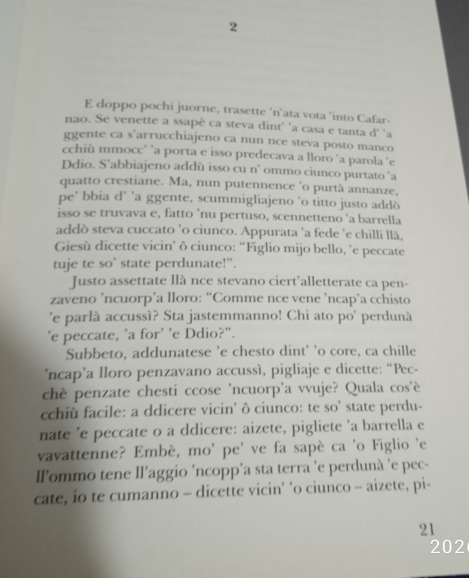 Se il napoletano riesce ad esprimere il racconto del Vangelo - è stato spiegato - se può rendere con il suo lessico , cioè l’insieme delle sue parole, i concetti della Teologia, della filosofia, allora vuol dire che è una lingua. Ciò è possibile perché il napoletano ha regole grammaticali, ortografiche e di pronuncia.