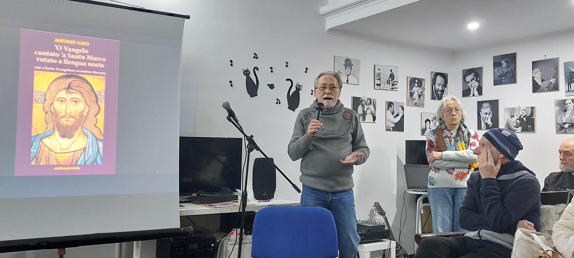 Al centro dell'incontro con un pubblico culturalmente molto qualificato, il libro di don Luiso,“‘0 Vangelo cuntato ‘a Santu Marco vutato a llengua nosta” (Il Vangelo raccontato da San Marco tradotto in lingua nostra). La professoressa Marina Carrese, presidente della Fondazione Il Giglio, ha intervistato l'autore che non è nuovo a questo esercizio di traduzione. Lo ha già fatto con l'Apocalisse di San Giovanni, uno dei libri della Bibbia più difficili da comprendere. Inoltre, ha tradotto in napoletano il saggio di teologia dogmatica di Sant'Anselmo d’Aosta Cur Deus homo?, un classico della Teologia medievale, che fonda sulla ragione la spiegazione delle verità di fede, possiamo tradurre il titolo dal latino “Perché Dio si è fatto uomo”? e che in napoletano suona “Pecché Ddio se facette ommo”.