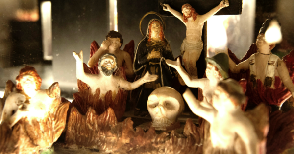 “Ritorno. Il culto delle anime pezzentelle” è il nome del progetto espositivo che vede come protagoniste centoquarantasette anime del Purgatorio realizzate in terracotta, provenienti da una raccolta privata di un collezionista romano, che custodiva le statuette un tempo popolanti le edicole votive in città.