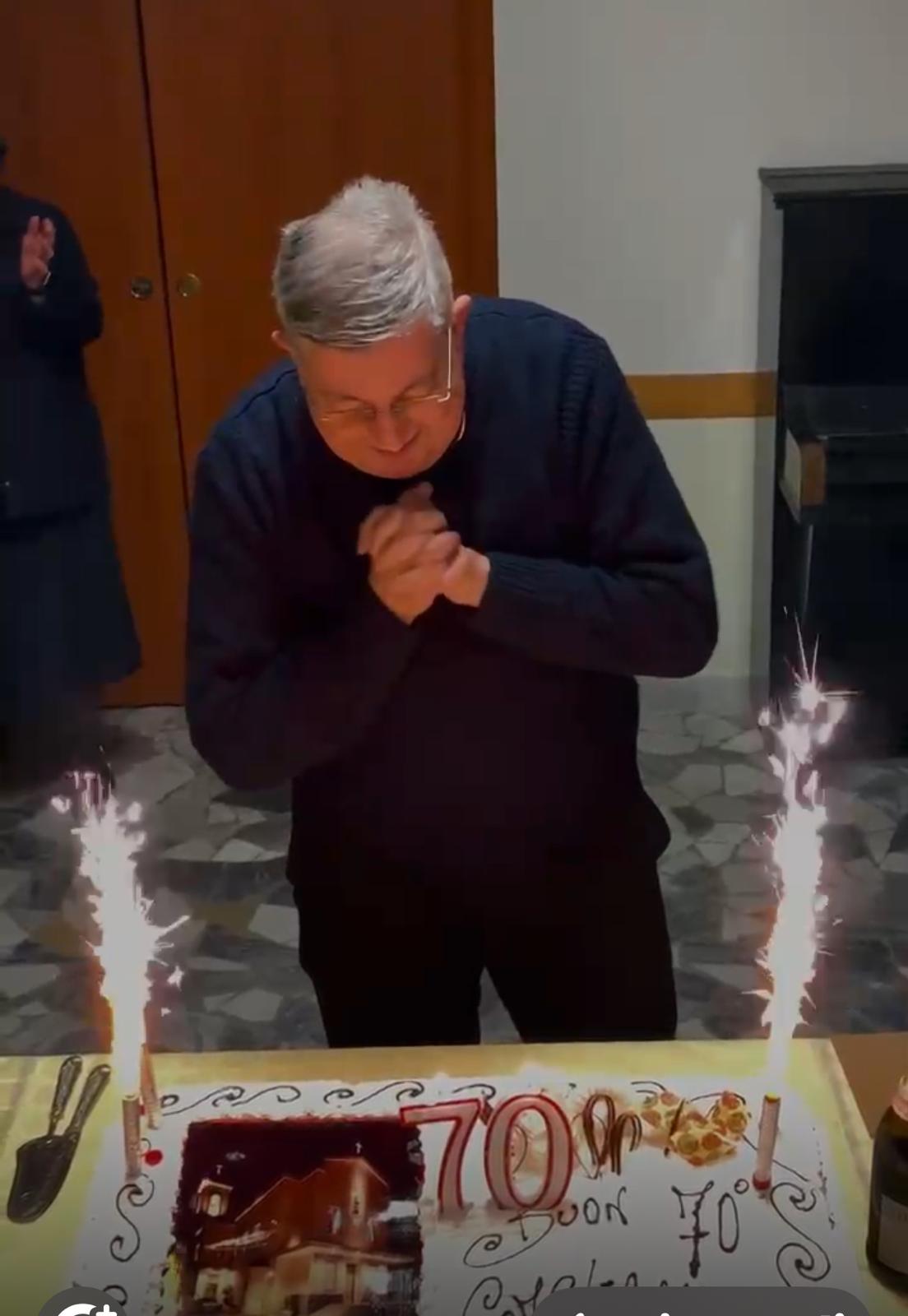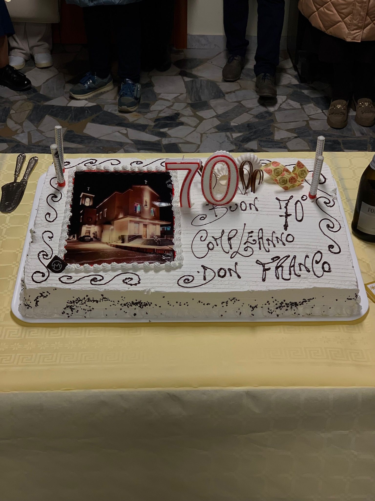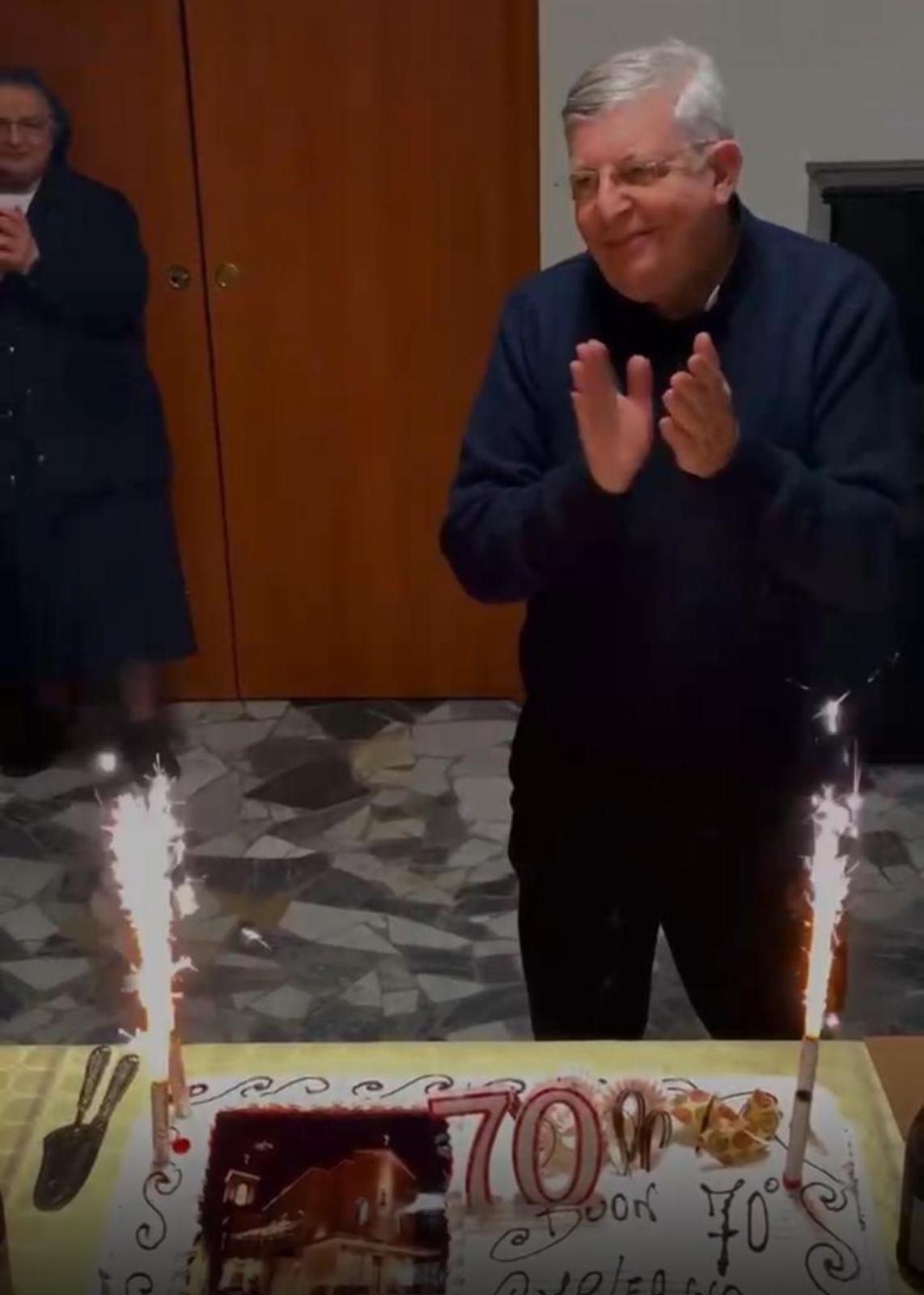 CASTELLAMMARE DI STABIA. È rimasto a bocca aperta, sbalordito, quando le luci si sono accese e un centinaio di parrocchiani gli hanno cantato "tanti auguri a te". Don Franco De Pasquale, parroco della chiesa dedicata a San Marco Evangelista, nel popoloso quartiere omonimo è stato accolto con una bellissima torta, per il suo 70° compleanno.
