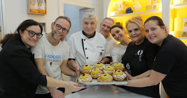 NAPOLI. A Napoli, esattamente in via Bologna 12-13, nei pressi della stazione centrale, Angelo Lauri fondò la sua pasticceria nel lontano 1963 insieme a sua moglie Giulia Esposito. Poi, tramandò i suoi segreti ai figli Luigi e Giovanni che, insieme alle loro mogli e ai propri figli, continuano oggi l’attività familiare con grande successo. Tra le specialità dei Lauri (tutti insieme nella foto di Enzo Calone) chiaramente non può mancare la tradizionale “Zeppola di San Giuseppe” che, senza ombra di dubbio, andrà letteralmente a ruba.
