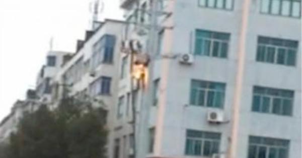 L'uomo ha preso fuoco per via dell'alta tensione: è accaduto in Cina