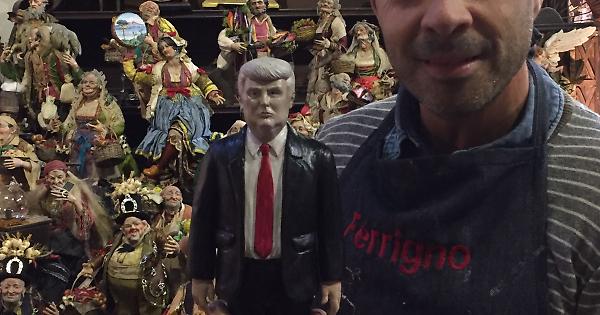 FERRIGNO. Il tempo dell'annuncio ufficiale e Marco Ferrigno ha subito realizzato la statuina di Trump, in vendita già nella sua bottega a San Gregorio Armeno.,