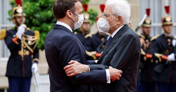 "Oggi la Francia accoglie un amico e un'eminente personalità, per la quale ha stima, affetto e ammirazione", dice Macron. "Sappiamo che avete dovuto affrontare questo virus, a volte da soli. Dopo siamo riusciti a dare una risposta comune, a costruire una solidarietà europea dalla primavera del 2020", riconosce il presidente francese.