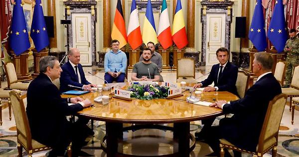"Oggi è una giornata storica per l’Europa. Italia, Francia e Germania, tre Paesi fondatori dell’Unione europea, e il presidente della Romania sono venuti in Ucraina per offrire il loro sostegno incondizionato al presidente Zelensky e al popolo ucraino. Un popolo che si è fatto esercito per respingere l’aggressione della Russia, per vivere in libertà" ha affermato il presidente del Consiglio.