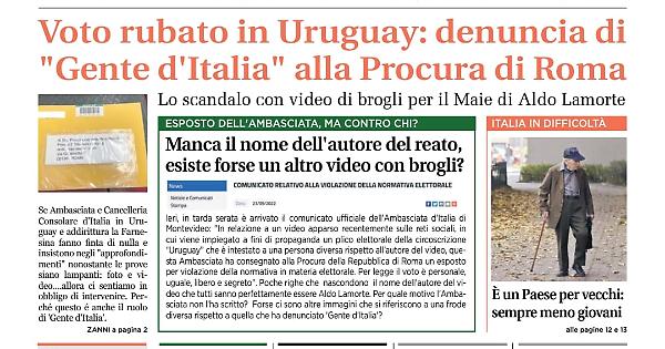 Brogli elettorali per il voto all’estero, e precisamente in Uruguay, degli italiani. A denunciarlo è il quotidiano “Gente d’Italia” che ha mandato un esposto alla Procura di Roma. Nella denuncia si legge: “Il signor Aldo Lamorte, rappresentate del partito Maie (Movimento associativo italiani all’estero) ha postato un video su Facebook e Instagram per spiegare le modalità di voto per gli italiani che risiedono all’estero. Per farlo ha usato schede e certificato elettorale originali, votando il partito Male mentre era ripreso dalla telecamera. Ma come si può chiaramente osservare dalle immagini il certificato elettorale mostrato non gli apparteneva: era infatti intestato a De Bellis Valeria. In questo modo il signor Lamorte ha infranto l’art. 18 della Costituzione che afferma che il “voto è personale ed eguale, libero e segreto”. E ancora. La richiesta di Domenico Porpiglia, editore e direttore del quotidiano, è quella di “verificare i fatti da noi riportati e indagare su come il suddetto Lamorte sia entrato in possesso del certificato appartenente a De Bellis Valeria e se l’appropiazione indebita non faccia parte di uno schema più ampio, una frode architettata durante le elezioni politiche italiane 2022 con il proposito di alterare i risultati delle votazioni della Circoscrizione Estero, ripartizione America del Sud che prevede l’elezione di due deputati e un senatore”.